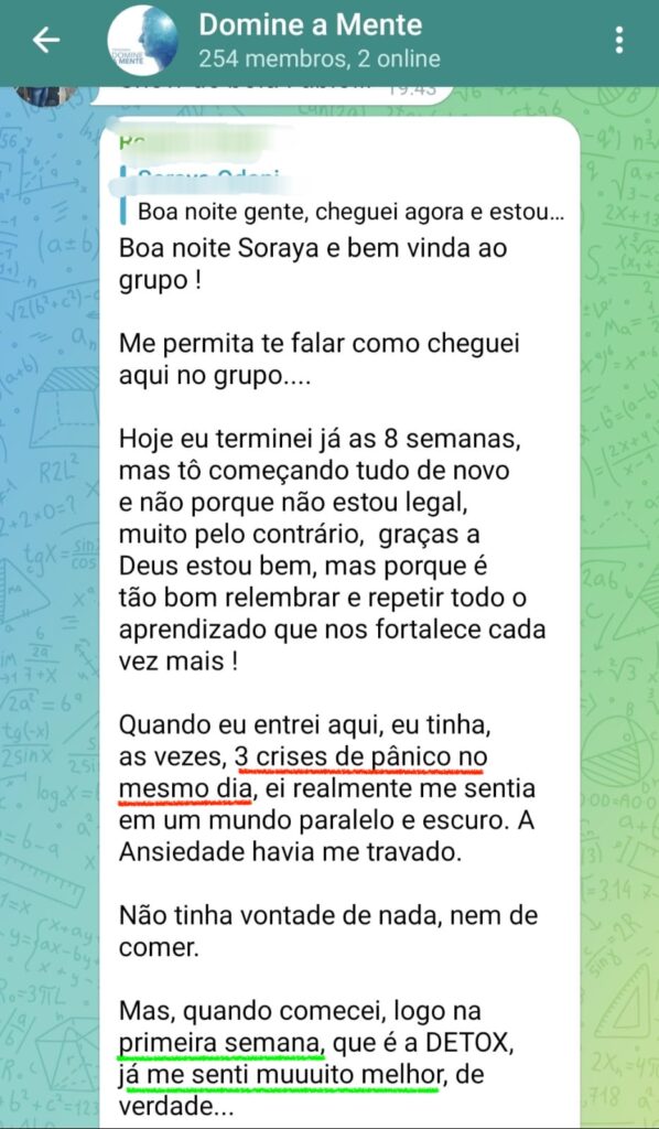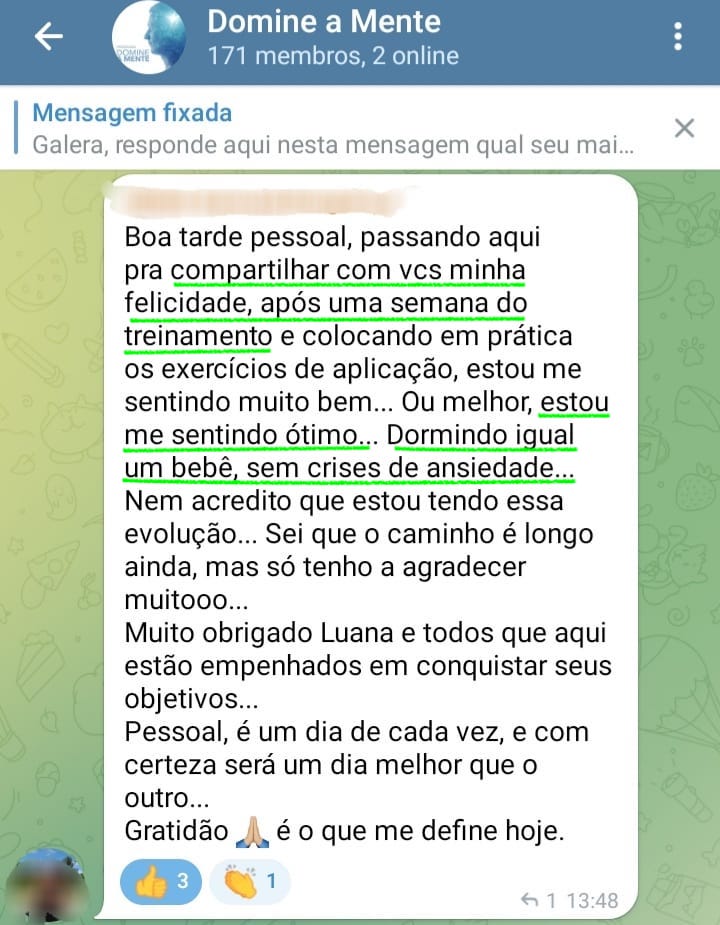 Recebemos diariamente mensagens emocionantes de pessoas que estão vencendo as crises de ansiedade com o Programa Domine a Mente. Histórias de quem finalmente encontrou paz e liberdade após anos de sofrimento.